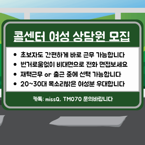 | 제목 | [재택가능] 여성 콜센터 상담원 긴급 모집 - 카톡:missQ (초보 환영) | ||