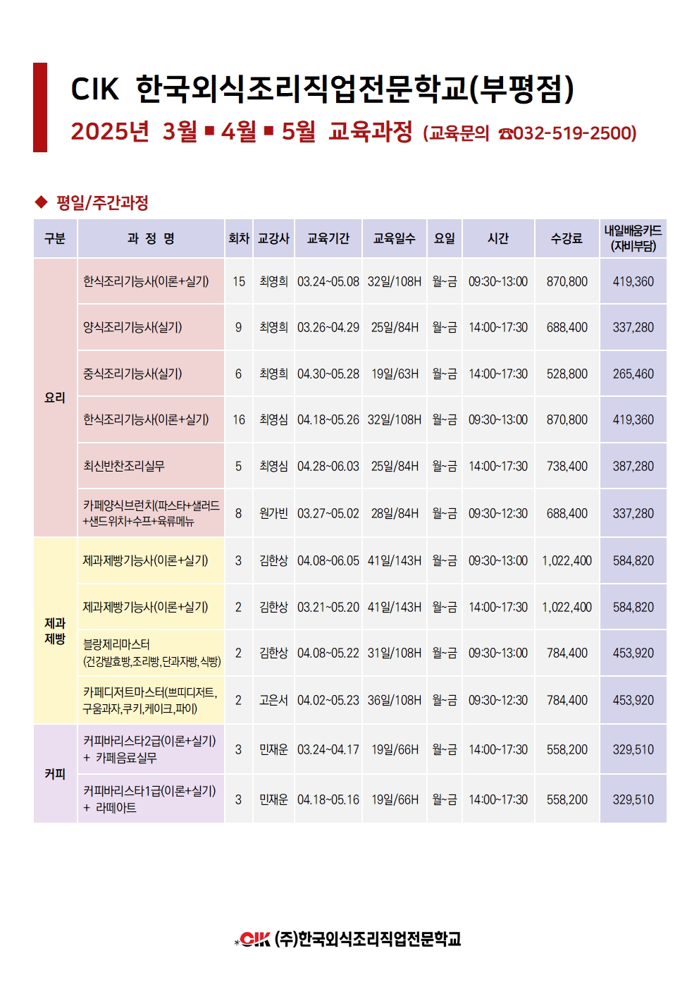 CIKÇѱ¹¿Ü½ÄÁ¶¸®Á÷¾÷Àü¹®Çб³(ºÎÆòÁ¡)À¸·Î