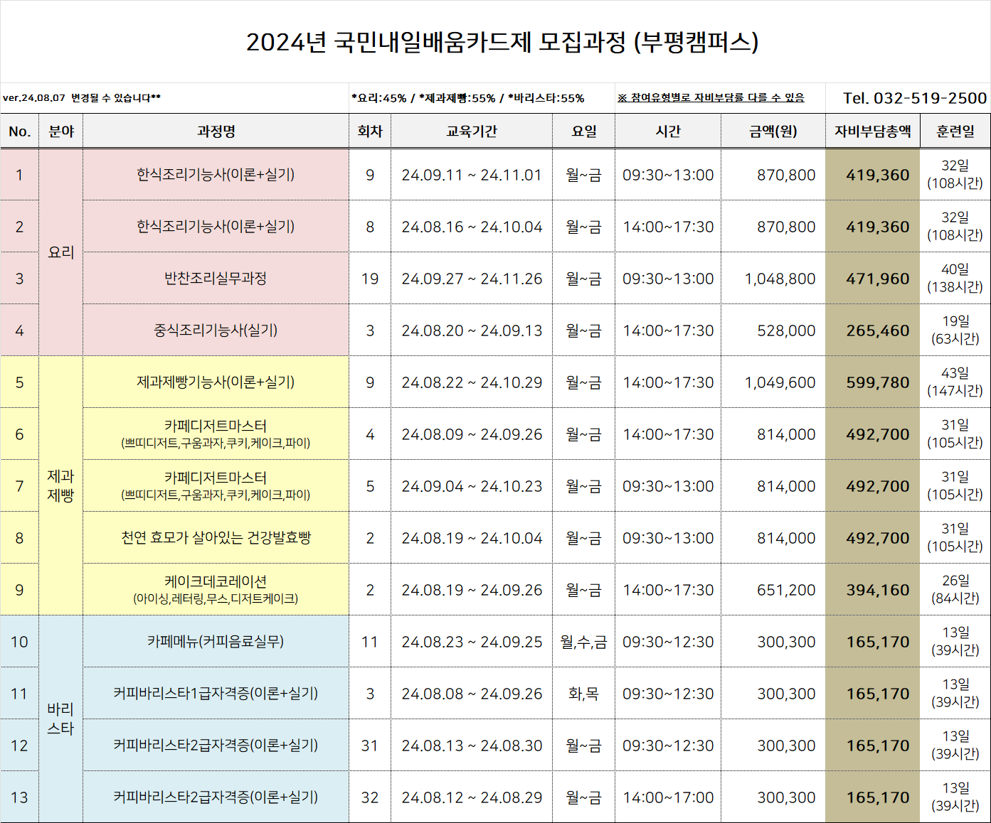 기초부터 현장메뉴까지 다양한 수강과정이 있으니